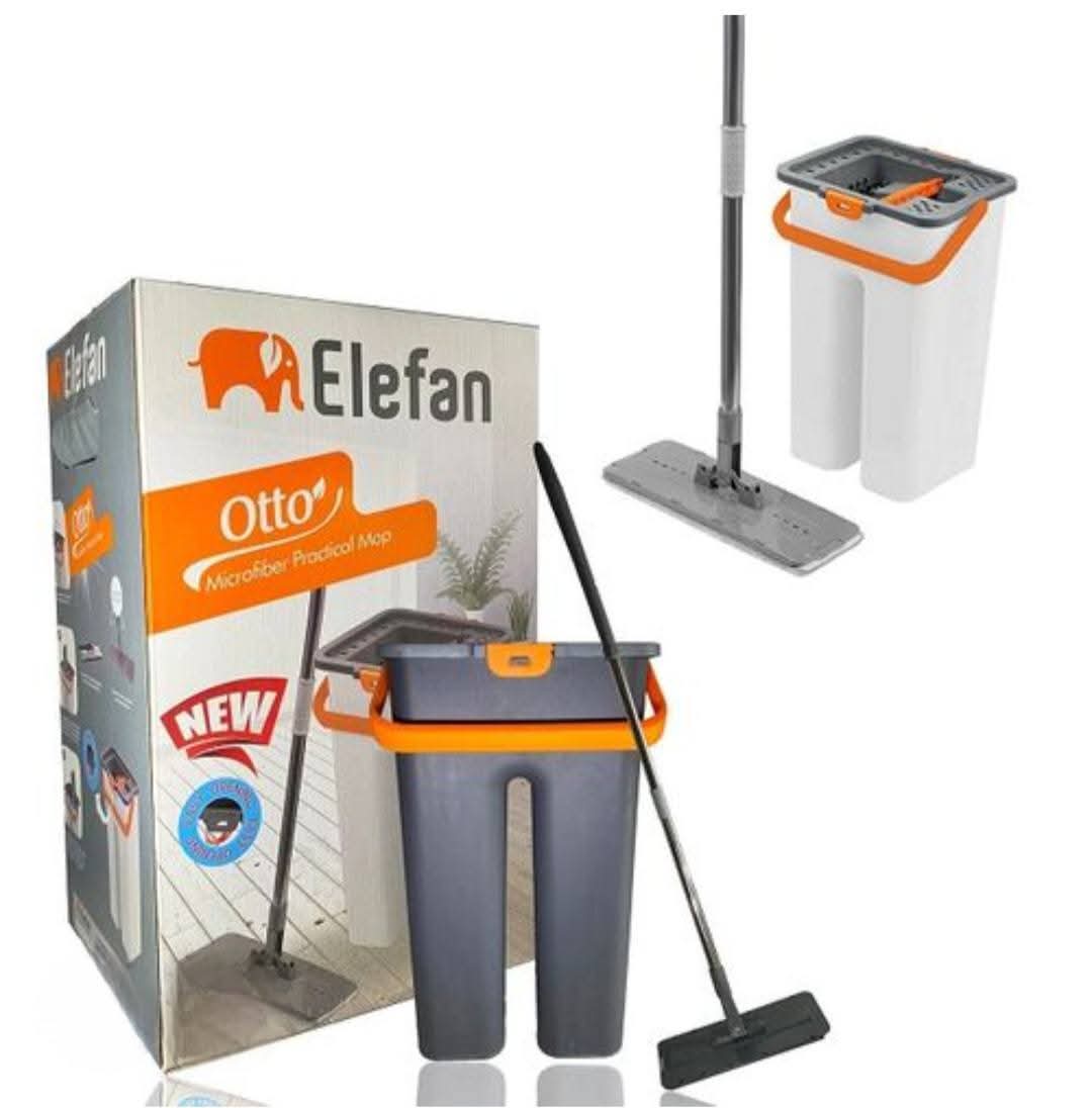 Ce système de nettoyage "Elefan Otto" est conçu pour rendre le lavage des sols plus facile et plus hygiénique. Le kit comprend un seau innovant à deux compartiments et un balai à franges plat en microfibre.