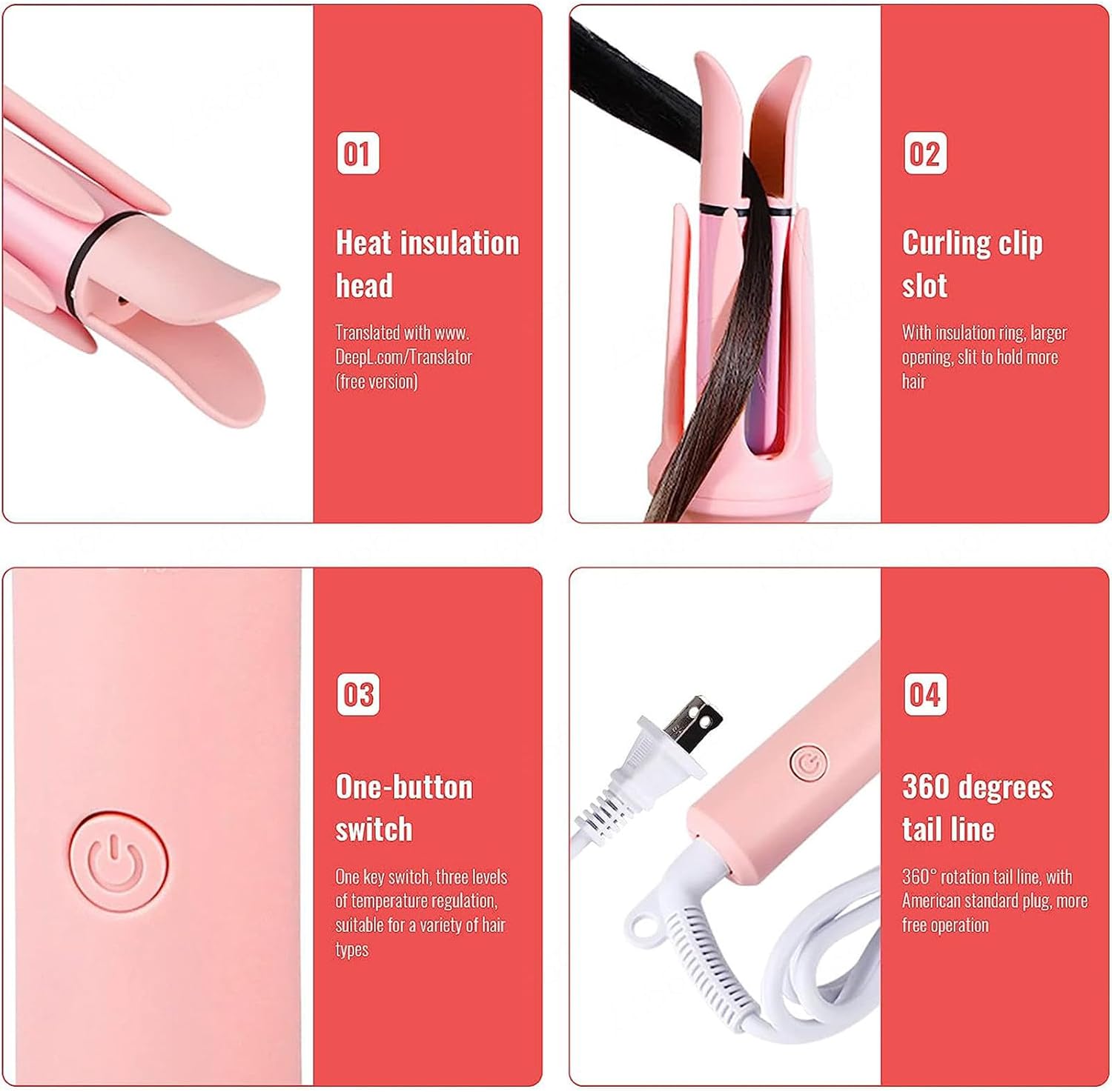 Obtenez de belles boucles en quelques secondes grâce à ce boucleur automatique compact. Facile à utiliser, il enroule vos cheveux sans les emmêler. 4 niveaux de température pour tous types de cheveux, arrêt automatique après 30 minutes, design léger et idéal pour les voyages. Un coiffage rapide, sûr et sans effort, où que vous soyez !