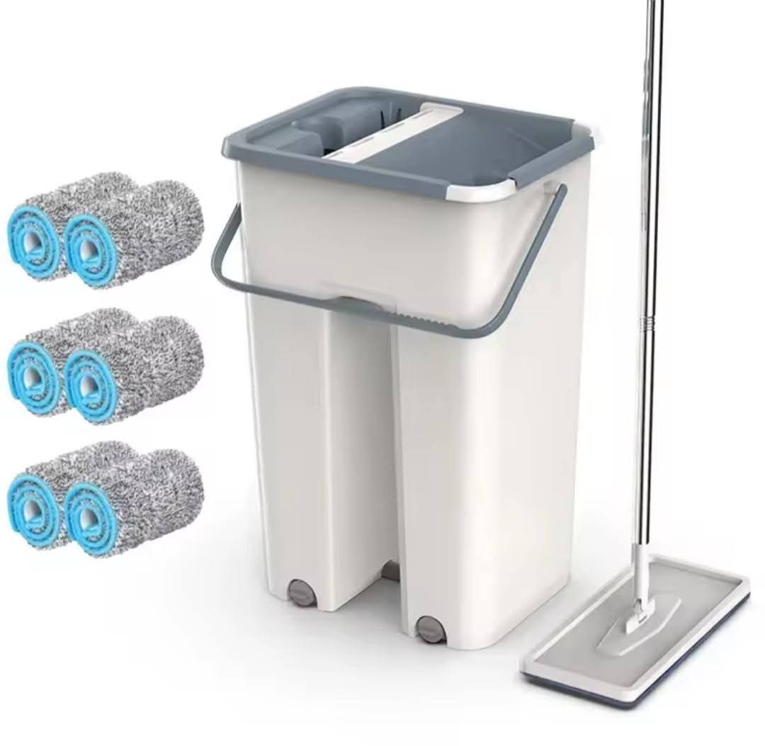 • Seau à double compartiment : Le seau est divisé en deux sections. La première section est pour le lavage du balai, et la deuxième pour l'essorage et l'élimination de l'excès d'eau sale. Ce système permet d'éviter de salir l'eau de lavage et d'utiliser une eau propre en permanence.